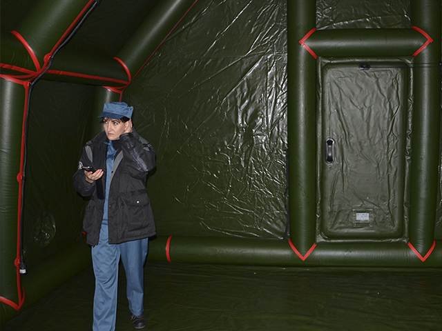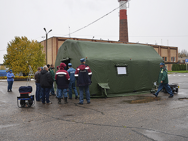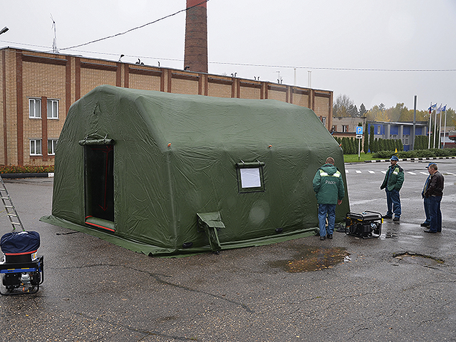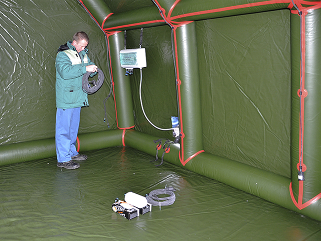 На площадке «РАДОНА» в рамках учений производилось развертывание с полным выходом на работу полевого пункта управления (ППУ). Установка полевого надувного модуля и приведение его в состояние боеготовности уложились в установленное нормативом время.