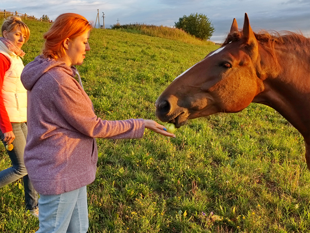 Радушный хозяин вкусно накормил и напоил – все из русской печки. И так как главная цель поездки – верховая езда, рассказал все о лошадях, их характере и повадках. Но поскольку катание на грациозных животных сопряжено с определенными опасностями, главное внимание слушающих было обращено на то, в каком настроении находится лошадка. Индикатор настроения – положение ушей. Уши вперед – настроение спокойно, уши назад – объект внимания позади, уши прижаты к голове – страх и гнев и т.д.
